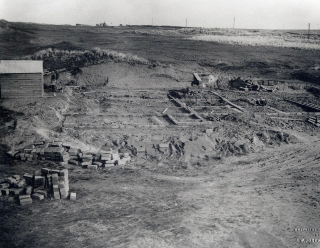 From the progress report of 9th February 1927 we can tell that the foundations had been laid and masons were engaged in building the walls. By the 11th March the walls were almost complete. The clubhouse was progressing well and it looked as though the front portion, the bar area, would be available by May, but the installation of a hot water and heating plant was postponed, presumably until funds were more plentiful.
