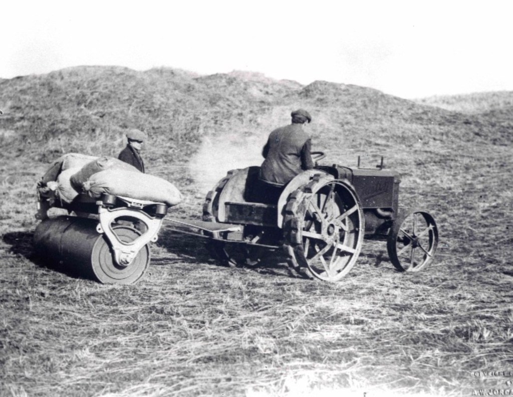 James Braid first visited the site on the 2nd November 1926, accompanied by a Mr J Pitceathley. Braid inspected the course and then met the committee members to deliver his verdict. Even after all this time we can imagine the tension as he began, but it was good news: he was satisfied that the club had a fine site for a first-class course. He said that Mr Knowles had done a splendid job in staking it out, an action which had made his work easier. He saw no need to depart from the general lines suggested, which would provide a course of about 6,000 yards, quite enough he felt, considering local conditions (presumably the terrain). He appreciated that sand dunes were abundant but considered that the walking was not too severe as many of the lines were fairly level, the exceptions being the 11th and 12th holes (current 2nd and 3rd). He felt that if work could begin promptly with a good squad of men arranged in gangs, then playing could begin in June 1927. If temporary greens were used then perhaps the date could be brought forward. Greens had been placed so as to save unnecessary labour and, whilst two or three mounds had to be removed, very little construction work was necessary as “the place lent itself admirably to the laying-out of an excellent course”. Good turf should be used in preference to seeding, 700 to 750 square yards a green, about 2.5 acres in total. It should be two inches thick and set on a one-inch bed of suitable soil, the original top having first been removed. A steam or petrol roller of two to four tons weight would be needed for the fairways. He thought that the total cost of the groundworks would be in the region of £2,000 but an additional amount would be required for tools and a further £400 for seeding, dressing and manure. Only three or four bunkers needed to be formed and work should start by forming the greens and tees. The James Braid fairways should be cut with short scythes and hooks, the stones removed and the area well rolled. A 30-inch mower would be needed and watering should either be “abundantly done or left alone”. Professional involvement during the construction period was advised and Mr Pitceathley was asked to visit from time to time to ensure that the plans were being followed. Mr Knowles’ considerable input was acknowledged and as a gesture of appreciation the club offered him honorary membership.