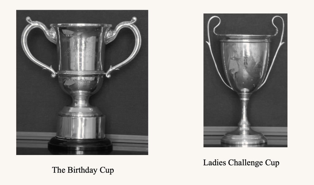 A spacious clubhouse has been erected which includes a club and general room 28 feet x 22 feet with a view overlooking the sea. There is also a secretary’s room and a card room about 12′ square. Accommodation is provided for ladies and gentlemen in the clubhouse by the equipment of dressing rooms for each 22′ x 16′. Within the building is a steward’s residence from which tea and other refreshments will be served.